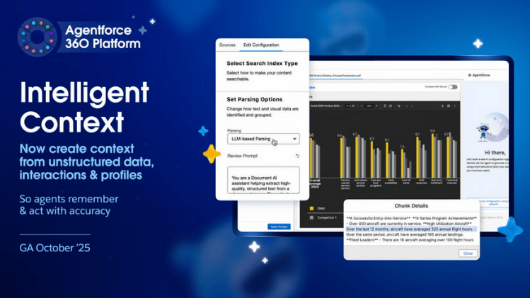 To help AI handle real-world complexity, Salesforce introduced Intelligent Context, enabling agents to reason over unstructured and dynamic data. This feature ensures every agent understands the full picture, from customer histories to emails and CRM data, before responding. By combining structured CRM insights with unstructured information, Intelligent Context powers responses that are more relevant, accurate, and human-like.