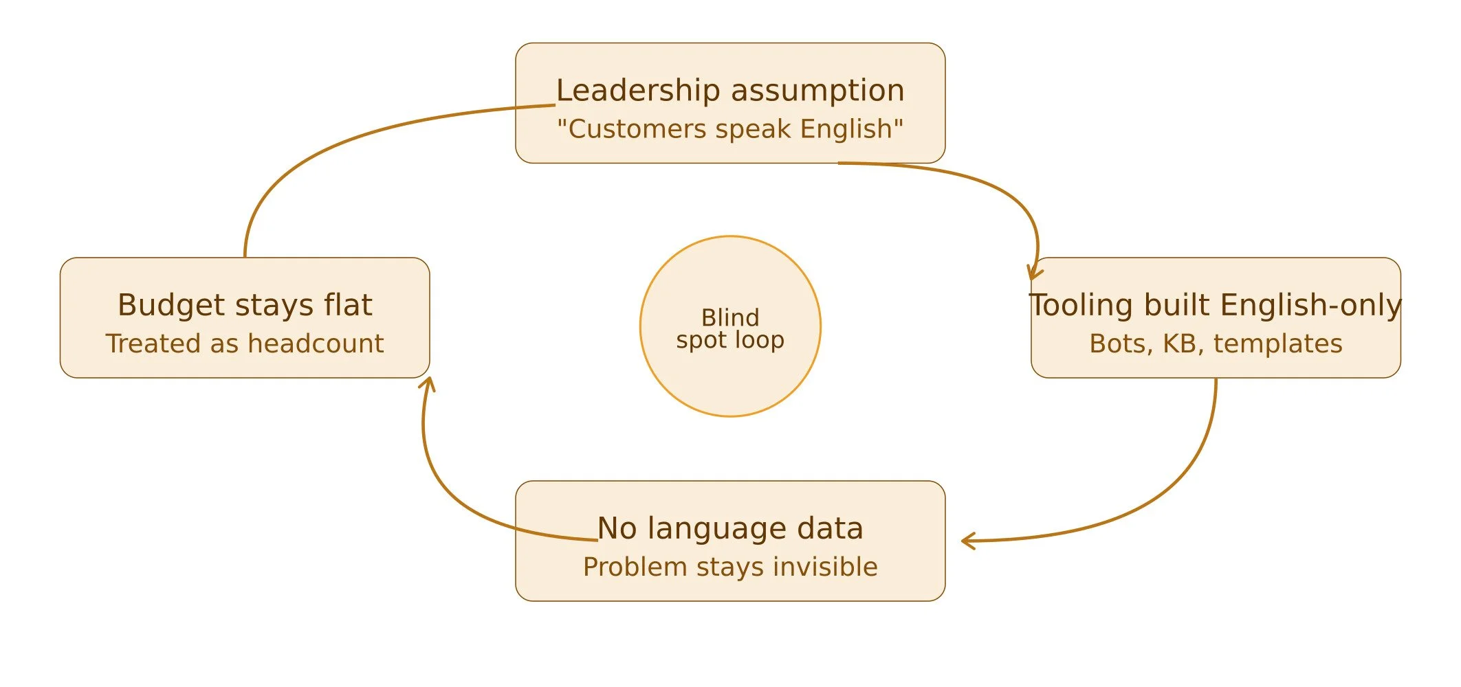 4. Finally, when the issue does surface, it tends to get treated as a headcount problem. "we need to hire more bilingual agents." That's expensive, slow, and often impossible at scale. The better answer is a systems problem with systems solutions.