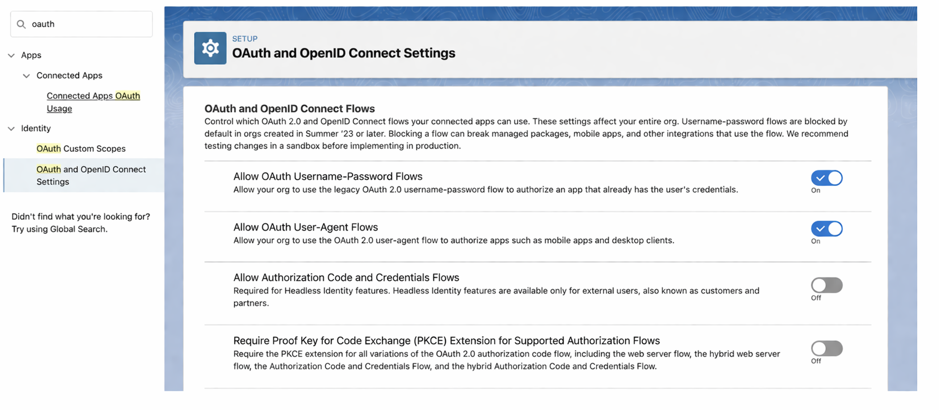 Username-Password Flow: Not available with ECAs. Salesforce's position is that this flow "is not a secure way of connecting as it exposes the username and password". Fair enough. But a lot of legacy server-to-server integrations still use it. If yours does, you're stuck with a Connected App. You can request a creation exception from Salesforce Support for now, but that exception has an expiry date.