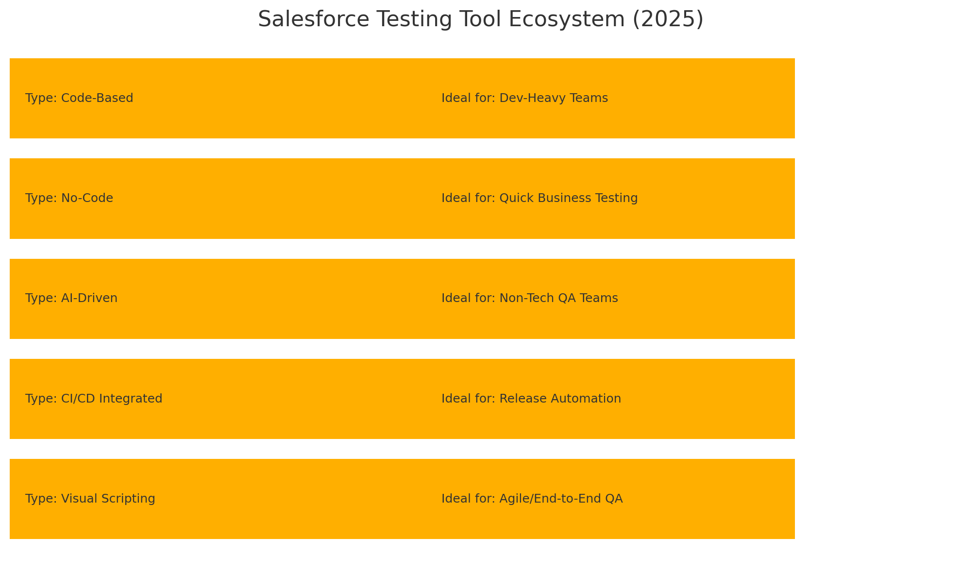 | Copado Robotic Testing | CI/CD integrated Salesforce QA | Seamless DevOps alignment | Businesses scaling automated pipelines |